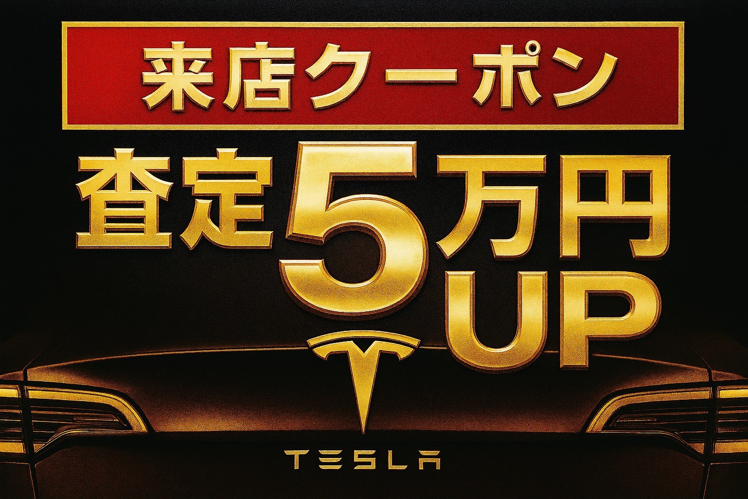 2025.11.08 査定5万アップキャンペーン♪実施中 カテゴリー: ご案内Tesla 皆様に日頃の感謝を込めて!!査定5万アップキャンペーン♪実施中 ※詳細はスタッフへお気軽にお問合せ下さいませ。 ◆不動車などは予めご相談下さい。 ◆他のクーポンとの併用は出来ません。